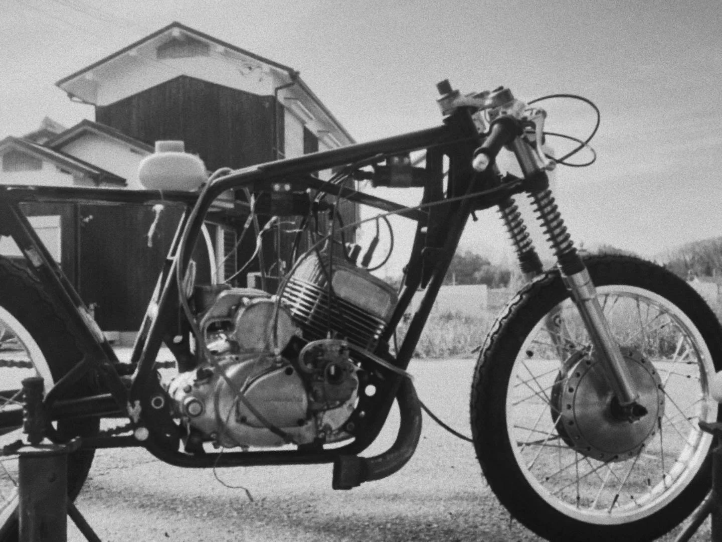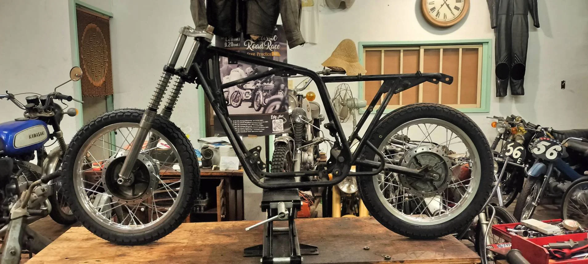 世界にカワサキA1が1000台現存するなら、この日タイヤが付いて転がる車体が出来た時には1001台と言えるんだろうか、やっぱりエンジンが乗ってエンジンが掛かった時に1001台になるんかな。